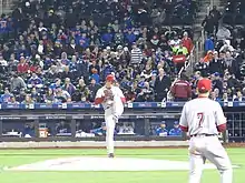 Ohlendorf only made two starts in 2011 before going on the disabled list with a shoulder strain, and after experiencing a setback in his rehab program did not make another major league start until August 23.[31] On September 15, Ohlendorf hit his first career home run off Dana Eveland, also becoming the first Pirates pitcher to homer since Paul Maholm did so on May 9, 2009, against the New York Mets.[32] Ohlendorf finished 2011 with a 1–3 record in nine games with an 8.15 ERA. On December 7, 2011, Ohlendorf was released by the Pirates.[33]