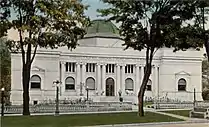 The Roswell P. Flower Memorial Library is a historic library building located in Watertown in Jefferson County, New York. The library was built in 1903 through 1904, and completed on November 10, 1904. The library opened on January 4, 1905. It was donated to the city by Emma Flower Taylor as a memorial to her father Roswell P. Flower (1835–1899), the 30th governor of New York. A genealogy department, local history collection and meeting rooms are inside the building. It also contains computers available for public use. The library serves as the primary library in Watertown and surrounding communities as a center for reading, culture and research.[2] It was listed on the National Register of Historic Places in 1980.