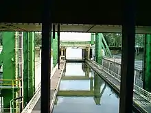 The boat lift overcomes a normal water level difference of 16 metres, however, changing water levels on the Elbe causes this to vary between 11 and 18 metres.[1] The trough moves between levels in 3 minutes. A boat can pass through the lift in 20 minutes. Approximately 70 ships with a maximum displacement of 1,000 tonnes pass through the lift daily. The dimensions of the caisson are 85 x 12.2 x 2.5 meters.