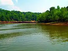 The Rough River is a 136-mile-long (219 km)[1] tributary of the Green River in west-central Kentucky in the United States. It's located about 70 miles southwest of Louisville, and flows through Breckinridge, Hardin, Grayson, and Ohio counties. Via the Green and Ohio rivers, it is part of the watershed of the Mississippi River.[2] According to the Geographic Names Information System, it has also been known historically as "Rough Creek".[3] In the 1950s it was dammed, creating Rough River Lake.