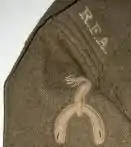 The spur badge worn by rough riders is still worn by riding instructors[2] in the King's Troop, Royal Horse Artillery, and the Household Cavalry, who still operate under the riding master. It is worn by gunners, troopers and non-commissioned officers on the right upper arm, above the rank chevrons and below the crown if worn; warrant officers wear it below the rank badge on the lower arm.[2]