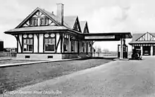 Canada has had a border inspection station at this crossing even before the US built its facility in 1936. In 1932, Canada built a Tudor-revival border station which stood until it was replaced with a brick building in 1971.[3] The original garage still stands at the north end of the CBSA property. A similar Tudor-revival border station still stands at the Trout River Border Crossing.