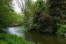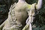 Away and unseen from the house, Kent's garden extends past classical temples, follies and statuary representing the spirit of that era, dying gladiators, a horse being savaged by a lion and other statues depicting similar themes. Paths lead through woods where the abundant water from the Cherwell is fully utilised: small rills lead to larger ponds and formal pools, classical statuary of Roman gods and mythological creatures are skilfully positioned to catch the eye as one progresses from a cascade to the cold bath and on to the next temple or arcade, each set in its own valley or glade, a succession of picturesque tableaux. The statues are by Peter Scheemakers.[6]