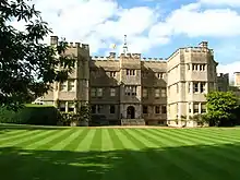 On the death of James Dormer in 1741, unmarried and without issue, the estate passed to his first cousin Sir Clement Cottrell-Dormer(1686–1758) (the son of his aunt Anne Cottrell) who added the surname Dormer to his patronymic.[3][4] At this time Kent also embellished the house itself, with crenellations and two wings containing a drawing room and a "delightful" library, according to Horace Walpole who said of Rousham in 1760 "it reinstated Kent with me; he has no where shewn so much taste".[5] The interiors were altered a century later but the hall, the principal room of the house, has survived alteration by successive generations unchanged, and remains as completed in the 17th century. Kent's exterior work is today almost as built, but in 1876 the original octagonal paned glazing was replaced with innovative large sheets of plate glass, during a heavy-handed restoration of the house by the architect James Piers St Aubyn. The house contains fine collections of Jacobean and 18th-century furniture, paintings and statuary, all displayed in a domestic setting.