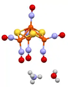 - ↑ Jaworska, Maria; Stasicka, Zofia (March 2006). "Structure and UV–vis spectroscopy of roussin black salt [Fe4S3(NO)7]−". Journal of Molecular Structure. 785 (1–3): 68–75. Bibcode:2006JMoSt.785...68J. doi:10.1016/j.molstruc.2005.09.030.