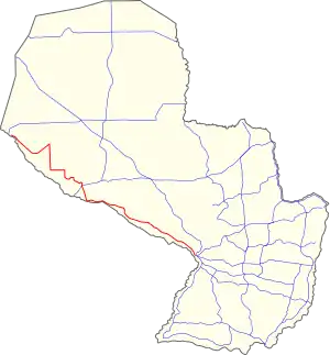 National Route 12[1] (officially, PY12, better known as Ruta Doce) is a highway in Paraguay, which runs from Chaco'i, part of the district of Villa Hayes, to Pozo Hondo, part of the district of Dr. Pedro P. Peña, connecting the western Chaco region to the metropolitan area of Asunción. It's currently paved only from Chaco'i to Tinfunqué National Park.