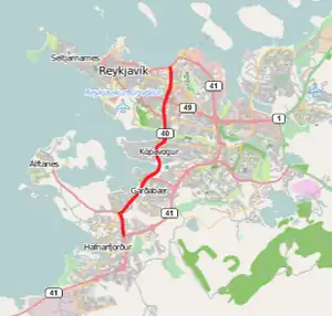 Route 40, known as Hafnarfjarðarvegur [ˈhapnarˌfjarðarˌvɛːɣʏr̥] in Icelandic or by its busiest stretch, Kringlumýrarbraut [ˈkʰriŋlʏˌmiːrarˌprœyːt], is one of the two major traffic arteries running across Capital Region.[1][2]