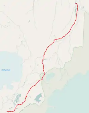 Route F26 or Sprengisandsleið (Icelandic pronunciation: [ˈspreiɲcɪˌsan(t)sˌleiːθ]) is a highland gravel road in Iceland, running through the Sprengisandur area between the glaciers Hofsjökull and Vatnajökull.