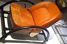The red[6][7] leather seat is from a Rover P6[8][9] and is housed in a black[10] painted curved steel frame made from a Kee Klamp milking stall.[1][6][8] Later exhibited pieces had epoxy lacquered frames.[11] The frame provides both feet and arm rests.[12]