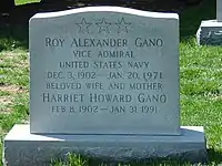 The admiral died on January 20, 1971, and was buried at Arlington National Cemetery. His wife, Harriet Howard Gano (1902–1991) is now buried with him.[1]