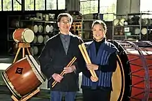 - ↑ http://www.janm.org/exhibits/bigdrum/press.php "BIG DRUM EXHIBITION REVEALS GROWING POPULARITY OF ENSEMBLE TAIKO GROUPS THROUGHOUT NORTH AMERICA PERFORMING ON JAPANESE DRUMS IN U.S. BEGAN WITH ONLY 3 JAPANESE AMERICAN GROUPS, NOW NUMBERS OVER 200" Japanese National Museum. 2010, May 25, 2010.
