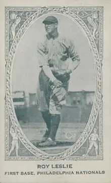 Roy Reid Leslie (August 23, 1894 – April 9, 1972) was a Major League Baseball first baseman. He played during three major league seasons for three teams, including a stint as the regular first baseman for the Philadelphia Phillies in 1922.