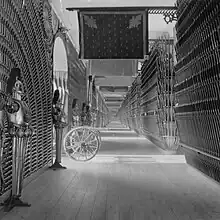 The collections of weapons are some of the most extensive in the world,[3] with more than 100,000 in their collection.[4] More than 8000 swords, pistols, armours, machine guns and other weapons and military attributes are displayed in the museum's Great Gallery and the Canon Galley boasts more than 300 canons dating from the 16th century to present days.