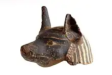 Another important element of the museum's displays are artefacts from the Ancient World. The museum is noted for its Ancient Egyptian and Ancient Greek artefacts which were collected by local antiquarians such as Robert Ogden and the Kent family of Tatefield Hall which is located near Beckwithshaw.[3][4][5] The Egyptology collection includes a well-preserved sarcophagus, a unique cartonnage mask of Anubis, Stele gravestones, pre-dynastic pottery and other artefacts from later periods of Ancient Egypt.