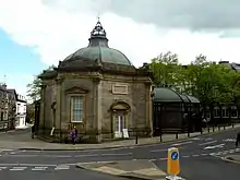 The Royal Pump Room is a Grade II* listed building in Harrogate, North Yorkshire, England. Today it houses the town's museum – operated by Harrogate Borough Council. It was formerly a spa water pump house. It is located in Crown Place in the western part of Harrogate town centre, opposite the town's Valley Gardens park. It is bounded by two streets, Crescent Road and Royal Parade. Today, the Pump Room consists of both the original 1842 stone rotunda and a glazed annexe which was opened in 1913.[1] The Pump Room offered guests of the town an all weather facility where they could drink sulphur water which was pumped on site from a natural spring known as the Old Sulphur Well. The building also had a social element to it as it provided guests with a place to meet friends and get to know others.