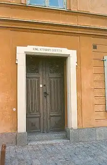 The academy was founded 1710 in Uppsala on the initiative of the university librarian Erik Benzelius (jr) (later archbishop) under the name of Collegium curiosorum.[1] The name was changed to Societas Literaria Sueciae in 1719, when it received a royal charter in 1728 to Societas regia literaria et scientarium, and it was known from the mid 18th century as the Societas regia scientarum upsaliensis. All the academy's publications were in the Latin language until 1863.[2]