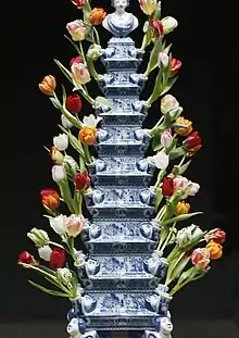 President Obama's chat with Mark Rutte during his visit to the Netherlands in 2014 was held in front of a replica of a pyramid flower-holder made by the Greek A factory. The replica was made in tin-glazed pottery by Royal Tichelaar Makkum.