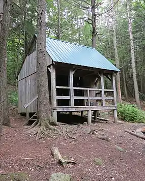 This shelter, located at the junction of the M&M Trail and the Tully Trail near Fall Brook, is about 0.3 miles from the Falls.