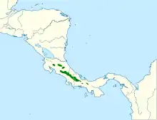 The ruddy treerunner is a bird of the highlands. It has a disjunct distribution. The nominate subspecies is found from the Cordillera de Guanacaste in northern Coasta Rica south into Panama's Chiriquí Province. Subspecies M. r. boultoni is found in eastern Chiriquí and Veraguas Provinces. The species inhabits the interior and edges of montane evergreen forest at elevations between 1,200 and 3,000 m (3,900 and 9,800 ft).[3][4][5]