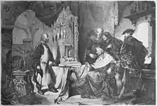 Seitz's work ranged from providing the ornamental frames and print decorations in the rococo style for magnificent editions of Goethe's Faust[1][2] and Schiller's Glocke,[3] with illustrations by Sándor Liezen-Mayer, to elaborately painting the ceiling of the Bavarian court bakers and designing their bread stamps (signa pistoris).[4]