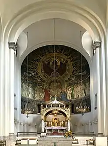 In 1883 Seitz was appointed curator at the National Museum in Munich, and in 1888 he became a professor at the Munich Academy of Fine Arts, where he established an academic program in art restoration.[13] Among his students were Franz Xaver Dietrich, Julius Diez, Max Frey,[14] Julius Mössel, Richard Throll, and Rihards Zariņš.[15] Seitz's work from this era includes the large fresco in the apse of St. Anna im Lehel church in Munich in 1897 and many other ceiling and wall paintings,[16] illustrations in Jugend (magazine) such as Sommer (1898, No. 37, p. 612), Bismark (1898, No. 3, cover), and a 1905 bare-bottomed sculpture of Saint Florian[17] adorning a water fountain in Bad Tölz.