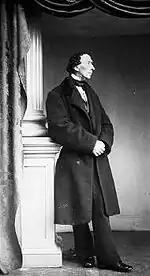 In 1860, he introduced carte-de-visite photography to Denmark.[2] The idea of using a photograph instead of a printed visiting card came from France where it was patented by André Adolphe Eugène Disdéri in 1854 with a four-lensed camera which could take from eight to twelve photographs on the same glass negative. As the prints could be collected in albums, the technique became extremely popular.[3]