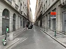 When it was opened in 1870 after filling and construction, the rue Royale was the main and the nicer street of the Tolozan quarter created by Soufflot, the other streets being rue Dauphine, rue de Berri and rue de Provence.[1][2] Many wealthy merchants began to live in the street and many restaurants opened. Originally, the street was a little longer, but the north was demolished in the mid-20th century with the goal of allowing the exit of the Tunnel de la Croix-Rousse. At the entrance of the street, there was a famous bathhouse called "Le Clavecin", built by Gary. After the death of French King Louis XIV, the street was named rue de la Convention, then in 1848 rue de Démocratie for a short while,[3] and rue Nationale in 1850.
