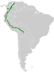 - โ Remsen, J. V., Jr., J. I. Areta, E. Bonaccorso, S. Claramunt, A. Jaramillo, D. F. Lane, J. F. Pacheco, M. B. Robbins, F. G. Stiles, and K. J. Zimmer. Version 24 August 2021. A classification of the bird species of South America. American Ornithological Society. https://www.museum.lsu.edu/~Remsen/SACCBaseline.htm retrieved August 24, 2021