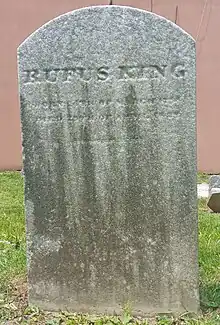 Rufus King died on April 29, 1827, and his funeral was held at his New York home in Jamaica, Queens. He is buried in the Grace Church Cemetery, in Jamaica, Queens.[18] The home that King purchased in 1805 and expanded thereafter and some of his farm make up King Park in Queens. The home, called King Manor, is now a museum open to the public. The Rufus King School, also known as P.S. 26, in Fresh Meadows, New York, was named after King, as was the Rufus King Hall on the City University of New York Queens College campus and King Street[19] in Madison, Wisconsin.