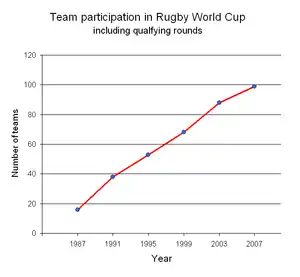 Teams marked in italics had appeared in a previous world cup (by invitation in 1987 and automatically thereafter). France, New Zealand, and South Africa have never needed to take part in the qualifying tournaments, having been invited to their first tournament and always qualifying automatically thereafter.