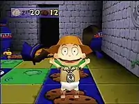 Praises included the colorful graphics, particularly its closeness to their 2D incarnations, the inclusion of voice acting from the series, and the spot-on lip synchronization.[lower-alpha 3] Mega Fun found the characters well-animated and designed.[11] Green had criticism towards the presentation, however, such as the "muffled" quality of the voice clips and the animation of the Rugrats being equivalent to the movement of "robots from a cheap 1960's sci-fi movie".[12]