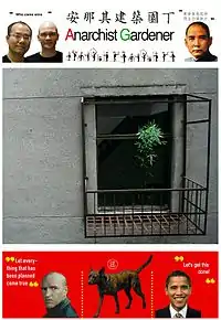 The Ruin Academy publishes an independent free newspaper, the Anarchist Gardener, edited by Nikita Wu.[17] The newspaper is an open form collage of the Academy's thinking on the future of the built human environment.[18] A special issue of the newspaper has been produced for the Shenzhen & Hong Kong Bi-City Biennial of Architecture and Urbanism 2012 .[19] and for the Austrian Museum of Contemporary art MAK exhibition Eastern Promises, 2013.[20]