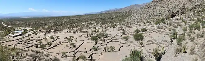 The Ruins of Quilmes is an archaeological site in the Calchaquí Valleys, Tucumán Province, Argentina. The site was the largest pre-Columbian settlement in the country,[1] occupying about 30 hectares.[2] The area dates back to ca 850 AD and was inhabited by the Quilmes people;[3] it is believed that about 5,000 people lived here during its heights.[2]