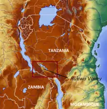 The Rukwa Valley is a valley located in Rukwa Region, Songwe Region and Katavi Region in southwestern Tanzania. The valley is a part of the Great Rift Valley.[1] Sparsely populated because of its harsh environment,[2] its grassland biodiversity includes thousands of species.
