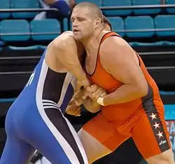Rulon Ellis Gardner (born August 16, 1971) is an American retired Greco-Roman wrestler. He won the gold medal at the 2000 Olympic Games, defeating Russia's three-time reigning Olympic gold medalist Aleksandr Karelin in the final;[2] Karelin was previously unbeaten for 13 years in international competition. Gardner won a bronze medal at the 2004 Games.[1] In 2010, he was inducted into the National Wrestling Hall of Fame as a Distinguished Member.[3]
