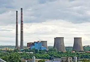 Ruse Iztok Thermal Power Plant (Bulgarian: ТЕЦ Русе Изток) is a power plant situated near the city of Ruse, Bulgaria. It has an installed capacity of 400 MW. It is owned by Holding Slovenske elektrarne.[1] Ruse Iztok Power Plant has 3 chimneys, from which 2 have a height of 180 metres and 1 has a height of 140 metres.