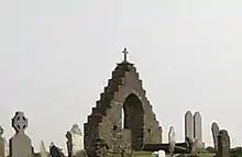 The ruins of the original St. Maur's chapel lie in Whitestown cemetery, about a mile west of the centre of Rush. These date back to Anglo-Norman times and are named after Saint Maurus, a follower of St. Benedict.[22] There is a legend connected with these ruins that some French navigators, who may have been crusaders, got caught in a storm. They made a vow to St. Maur that if they survived they would build a chapel in his honour on the first point of land they reached. They subsequently landed at Rogerstown and built a chapel there in his honour. The area became known as Knightstown and later Whitestown.