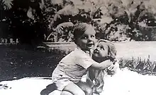 Ruskin Bond was born on 19th May 1934 ,[3][4] in Kasauli, Punjab States Agency, British India. His father, Aubrey Alexander Bond,[5] was born in a military camp in Shahjahanpur, a small town in north India.[6] Later he became a tutor in a small school in the Jamnagar palace for their princes and princesses, where Ruskin also studied for his first six years. He taught English to the princesses of Jamnagar palace and Ruskin Bond and his sister Ellen lived there till he was six. Later, Ruskin's father joined the Royal Air Force in 1939 and Ruskin along with his mother and sister went to live at his maternal home at Dehradun. Shortly after that, he was sent to a boarding school in Mussoorie. When Ruskin was eight years old, his mother Edith Clerke[7] separated from his father and married a Punjabi Hindu, Hari. His father arranged for Ruskin to be brought to New Delhi where he was posted. He was very close to his father and describes this period (1942-1944) with his father as one of the happiest times of his life. When he was ten, his father died due to malaria, while he was posted in Calcutta.[8] He was buried in the Bhowanipore War Cemetery in Calcutta.[9] Ruskin was at his boarding school in Shimla and was informed about this tragedy by his teacher. He was thoroughly heartbroken. Later, he was raised in Dehradun.
