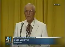 ![]() Russ Van Dyke moderating a 1987 presidential candidate debate[1] | |
