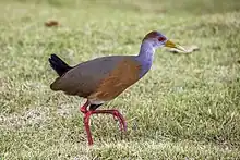 The russet-naped wood rail was originally described as a species but in the early 20th century was reclassified as a subspecies of what was then called the gray-necked wood rail (Aramides cajanea). A 2015 paper by Marcondes and Silveira[4] proposed reconsidering its position and in 2016 taxonomic systems restored it to species status and renamed the now-reduced A. cajanea the grey-cowled wood rail.[5][2][6][3]