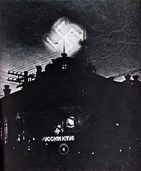 The Russian Fascist Party maintained very close links with Japanese military intelligence, and in January 1934, Rodzaevsky visited Tokyo to ask the Army Minister General Sadao Araki for a Japanese support to raise an army of 150,000 men from the ethnic Russian population of Manchukuo that would be led by him to invade the Soviet Union.[13] Nothing came of this plan, if only because the Russian Fascist Party did not command the loyalty of 150,000 whom Rodzavesky claimed would flock to his banner. From 1936 onward, members of the party infiltrated into the Soviet Far East from Manchukuo to engage in sabotage and to hand out pamphlets calling for the overthrow of the Soviet régime.[13] This was extremely dangerous work, and most of the volunteers who infiltrated the Soviet Union were captured; in July 1938, a "spy school" was established to provide training for the volunteers, but the capture rate remained high, right up to April 1941 when the Soviet-Japanese non-aggression pact put an end to these operations.[13] The Kwantung Army operated a secret biological-chemical warfare unit, Unit 731, based in Pingfang, that performed gruesome experiments on people that usually involved much evisceration of the subjects to see the effects of chemicals and germs on the human body that were always fatal for the subject. In the late 1930s, the doctors of Unit 731 demanded more Caucasian subjects to experiment upon in order to test the efficiency the strains of anthrax and plague that they were developing to kill Caucasians, having already mastered strains capable of killing Asians by much experimentation on Chinese subjects, and as such a great many of the Russians living in Manchukuo found themselves the unwilling human guinea-pigs of Unit 731.[14] The Kwantung Army used the Russian Fascists to kidnap various "unreliable" Russians living in Manchukuo for Unit 731 to experiment upon.[14]