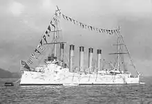 ![]() Russian cruiser Askold on trials after construction at Kiel | |