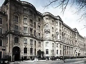 Practicing architects followed Benois; for example, in 1903 Ivan Fomin, a successful 30-year-old enthusiast of Art Nouveau, switched to purely Neoclassical, palladian architecture and returned from Moscow to Saint Petersburg to practice neoclassicism on its own territory; his studies of early 19th century, culminating in a 1911 exhibition of historical architecture, were followed by a wide public interest to classical art in general.[5] The conceptual statement of neoclassicism - and the term itself[6] - were further developed in 1909 in Apollon magazine by Benois and Sergei Makovsky.