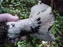 Russula albonigra, commonly known as the blackening russula,[1] is a member of the genus Russula, all of which are collectively known as brittlegills. It grows under both hardwood and conifer trees.[1]