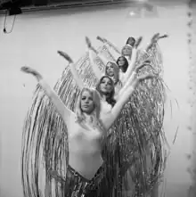 Following an Equity-backed dispute with their management over pay rates for Dutch shows,[7] three members, Colby, Lord and Wilde, walked out and formed a new group on 8 December 1966 in London.[8] After considering other names, including Dionysus's Darlings they agreed on the name Pan's People, named after the Greek god Pan as the "god of dance, music and debauchery".[9] By 18 December, they were joined by two of the remaining three Beat Girls, Harris and Fergusson. This marked the end of the Beat Girls as a regular act on British television; however, with new recruits joining Diane South,[10] that group continued their Dutch engagements from January 1967, finally ceasing to perform in May 1968.[11]