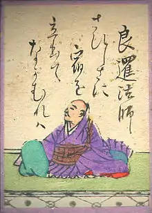 Ryōzen (良暹, dates unknown, but flourished c. 998—1064) was a Japanese waka poet of the mid-Heian period. One of his poems was included in the Ogura Hyakunin Isshu, and thirty-one of his poems were included in imperial anthologies from the Goshūi Wakashū on.
