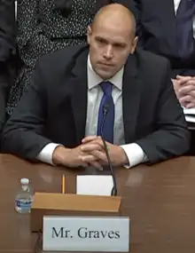 Graves and another Super Hornet pilot Danny Accoin shared with The New York Times on May 26, 2019, about unidentified anomalous phenomena (UAPs) that they and other pilots witnessed almost daily on radar, infrared, and visually from the summer of 2014 to March 2015 during training missions over the East Coast of the United States.[1] Politico reported in August 2023 that the All-domain Anomaly Resolution Office (AARO) is "required by law to launch a public-facing website where witnesses can directly report potential UFO sightings" but that this website is "tied up in Pentagon red tape".[2] Graves told Politico that "the existing reporting mechanisms only receive two or three reports a month" whereas his nonprofit group, Americans for Safe Aerospace, receives "this same number of reports every couple of days".[2] Graves testified alongside David Fravor and David Grusch at a July 26, 2023 House hearing on UAPs.[3]
