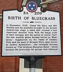The Ryman through the mid-1960s hosted many musicians: Marian Anderson in 1932, Bill Monroe and the Bluegrass Boys in 1945, Little Jimmy Dickens in 1948, Hank Williams in 1949, The Carter Sisters with Mother Maybelle Carter in 1950, Elvis in 1954, Johnny Cash in 1956, trumpeter Louis Armstrong in 1957, Patsy Cline in 1960, Lester Flatt & Earl Scruggs (bluegrass) in 1964, and Minnie Pearl in 1964.[10]