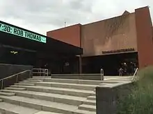 In September 1993, renovations were begun to develop it as a world-class concert hall. Building systems were upgraded, such as air conditioning for the first time.[16] The auditorium's original wooden pews were removed, refurbished, and returned to the building to serve as the auditorium's seating. Both far-reaching ends of the U-shaped balcony (which had previously extended all the way to the building's south wall) were removed. New backstage facilities were built inside the original building. An addition containing a lobby, restrooms, concessions, offices, and a grand staircase leading to the balcony was constructed and attached to the east side of the auditorium. With this change, the Ryman's main entrance was moved from the west side of the building (Fifth Avenue North) to the east side (Fourth Avenue North). An outdoor entry plaza was also added here, and a large statue of Thomas Ryman was installed.