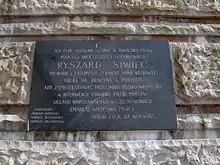 Memorial plaques dedicated to his memory exist in Warsaw, Dębica and Przemyśl.[4] A bridge in Przemyśl, where he lived, was named after him in 1991,[6] as well as a street in Prague in front of the Czech Institute for the Study of Totalitarian Regimes, with a nearby memorial dedicated to him, unveiled in 2010.[4][6] A street in Warsaw adjacent to the new Stadion Narodowy, which replaced the Stadion Dziesięciolecia, was named for him in 2011, and an obelisk was installed in his memory.[13] Nonetheless, as noted by Kavaliauskas in 2010, he still is less known than other self-immolators of his time.[7]